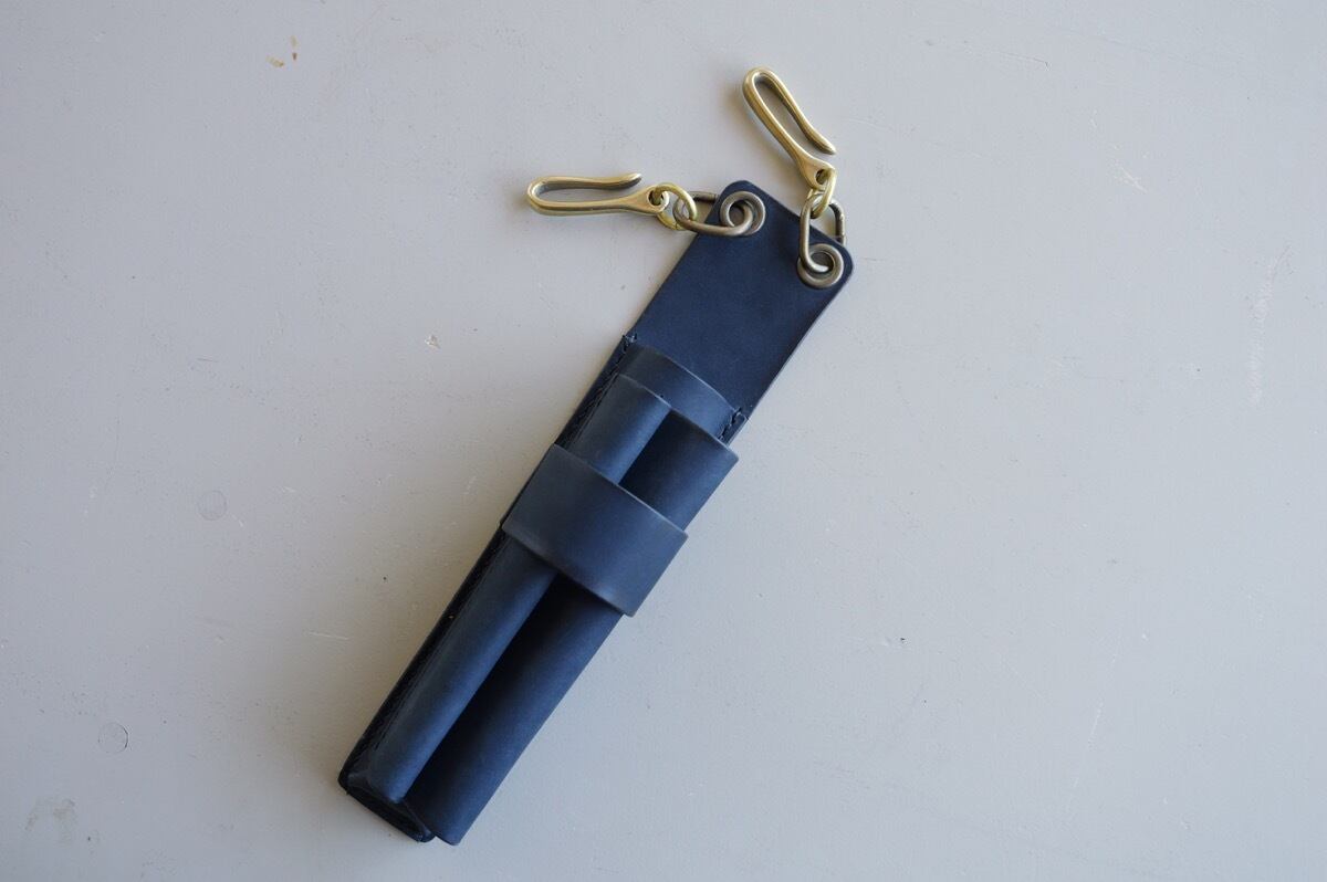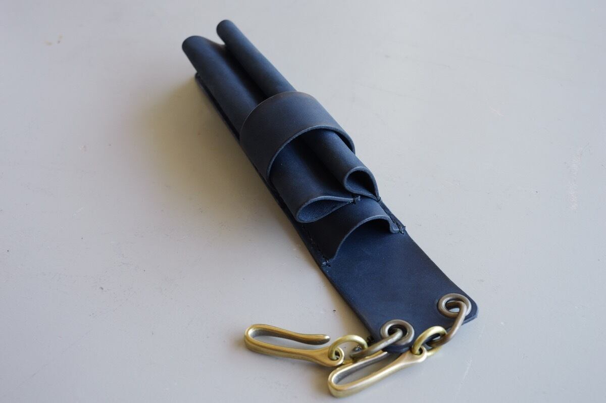 ネイビーの国産の牛革を使って製作した、シザーケースです。