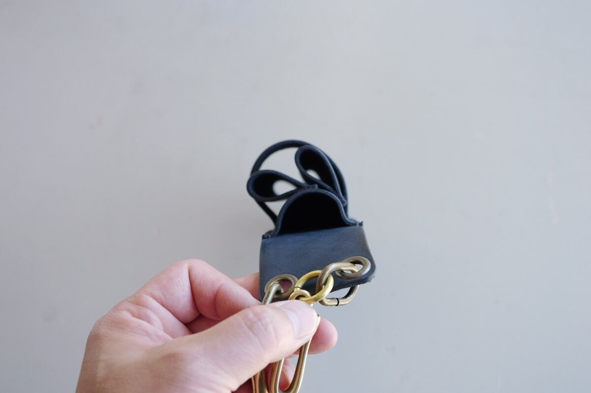 在庫として持っていたものでしたが、ベルトに引っ掛けるフックの部分の金具を取り替え、真鍮の金具を連結して繋げています。