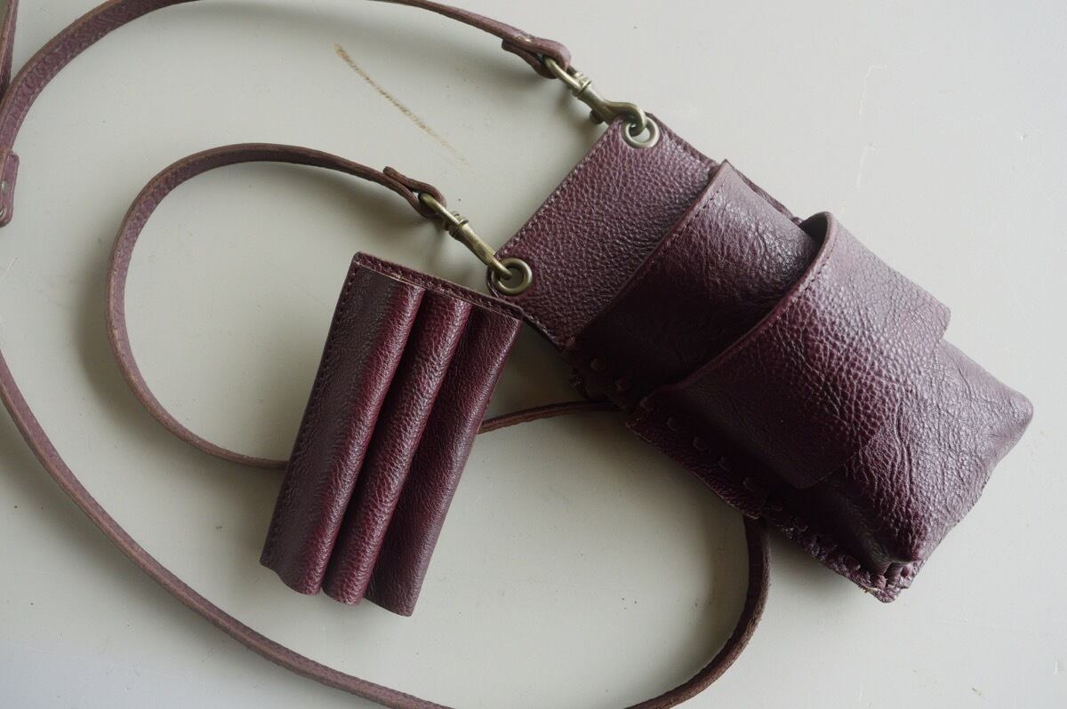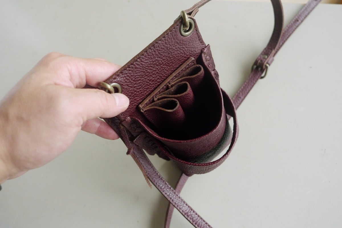 在庫として保管していた革を使って制作した3丁差しのシザーケースです。