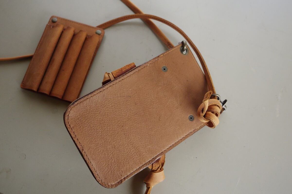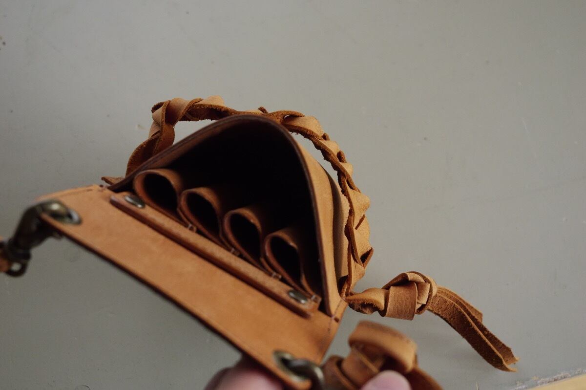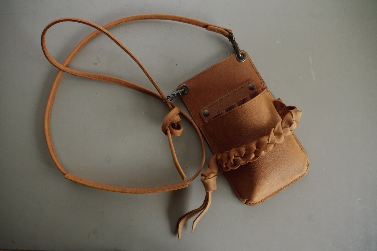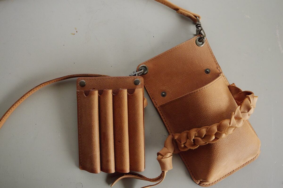 【005】シボがあるキャメル系の牛革を使った、4丁差しのシザーケース